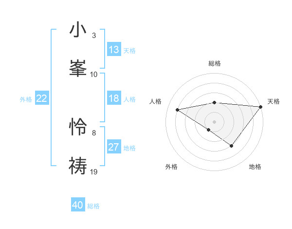小峯 怜祷さんの天格は13画の5点!