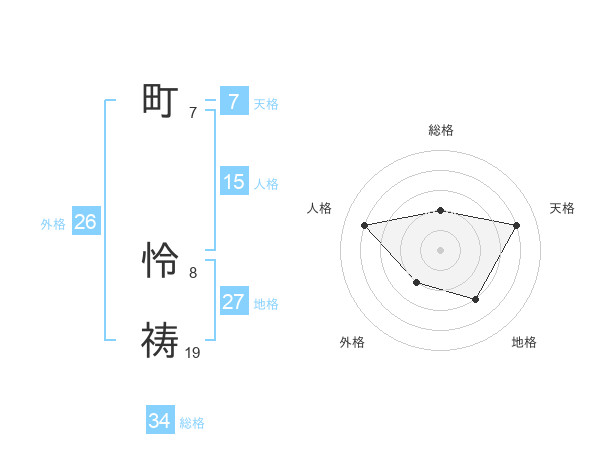 町 怜祷さんの総格は34画の2点!