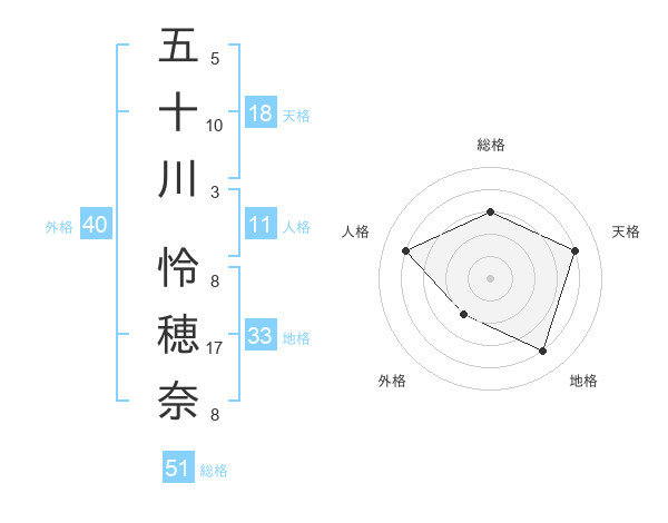 五十川 怜穂奈さんを姓名の画数から五運を鑑定