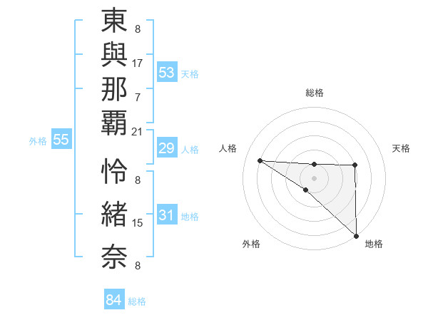 東與那覇 怜緒奈さんを姓名の画数から五運を鑑定