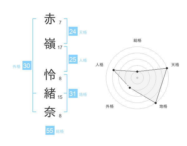 赤嶺 怜緒奈さんの天格は24画の5点!