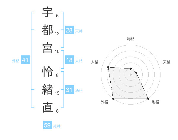 宇都宮 怜緒直さんの外格は41画の5点!