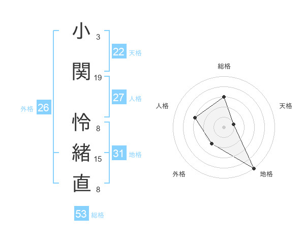 小関 怜緒直さんを姓名の画数から五運を鑑定