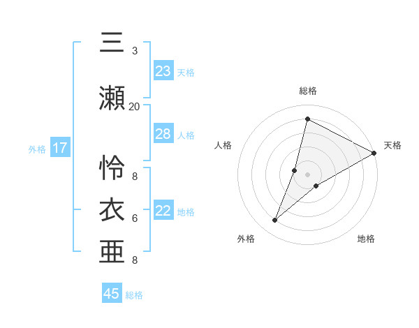 三瀬 怜衣亜さんの天格は23画の5点!