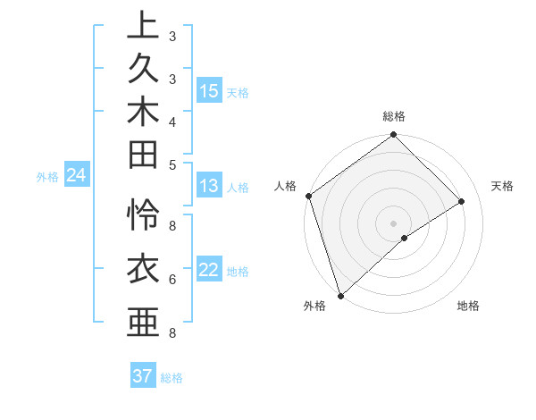 上久木田 怜衣亜さんを姓名の画数から五運を鑑定