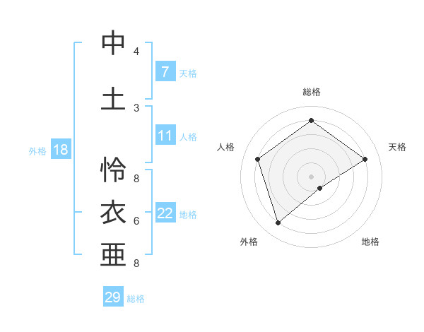 中土 怜衣亜さんの総格は29画の4点!