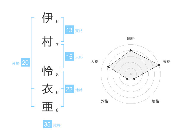 伊村 怜衣亜さんの総格は35画の4点!