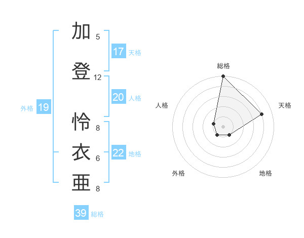 加登 怜衣亜さんを姓名の画数から五運を鑑定