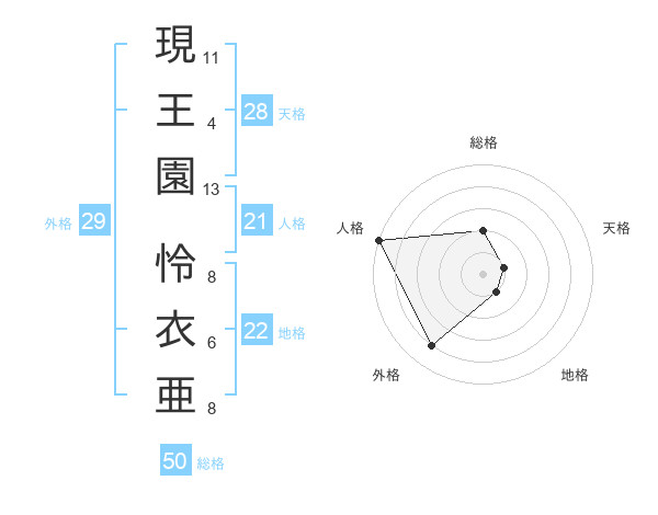 現王園 怜衣亜さんの総格は50画の2点!