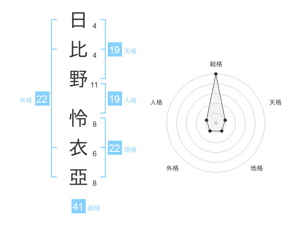日比野 怜衣亞さんを姓名の画数から五運を鑑定