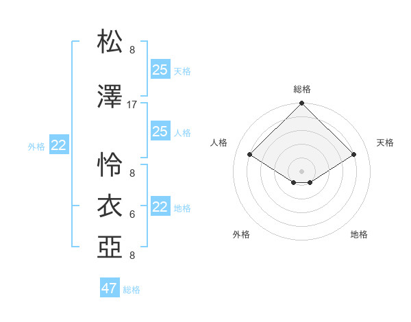 松澤 怜衣亞さんの総格は47画の5点!