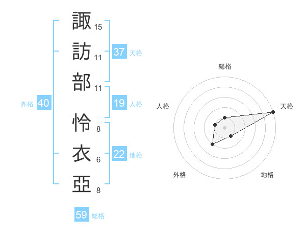 諏訪部 怜衣亞さんの天格は37画の5点!