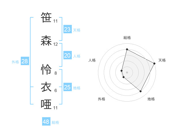 笹森 怜衣唖さんの総格は48画の4点!