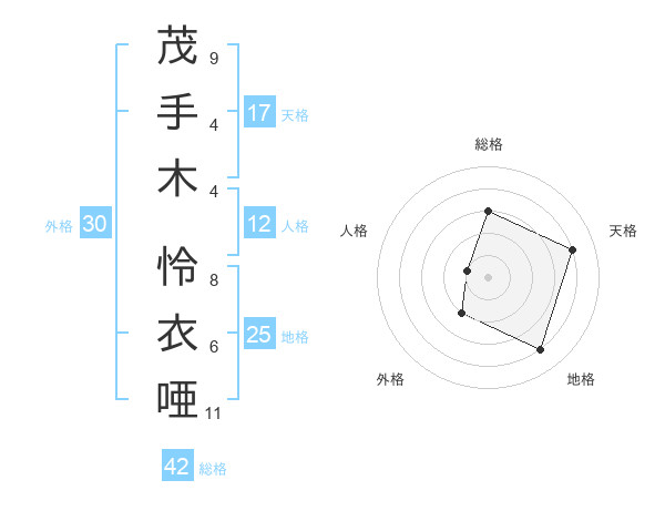 茂手木 怜衣唖さんを姓名の画数から五運を鑑定