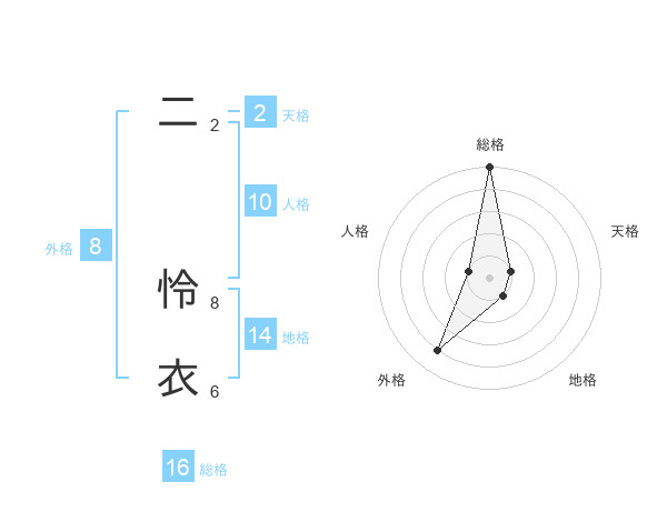 二 怜衣さんの総格は16画の5点!