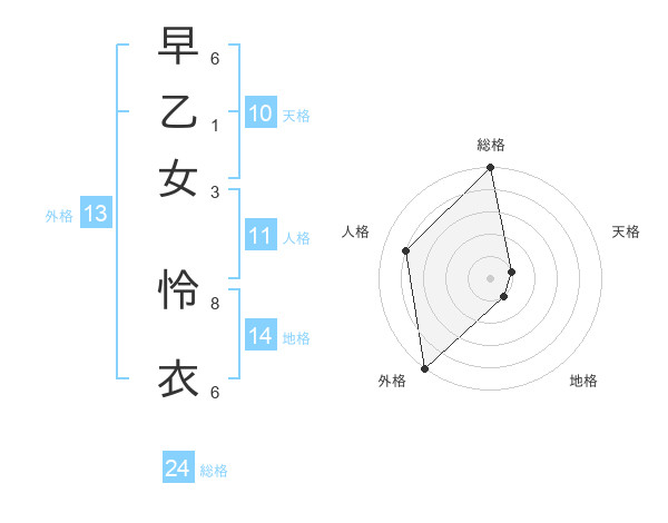 早乙女 怜衣さんを姓名の画数から五運を鑑定