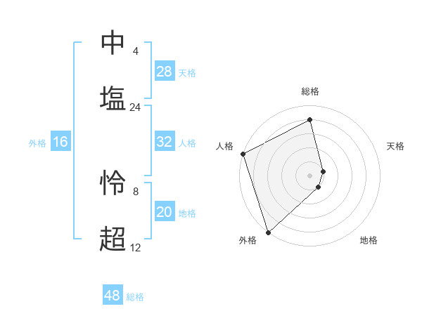 中塩 怜超さんを姓名の画数から五運を鑑定