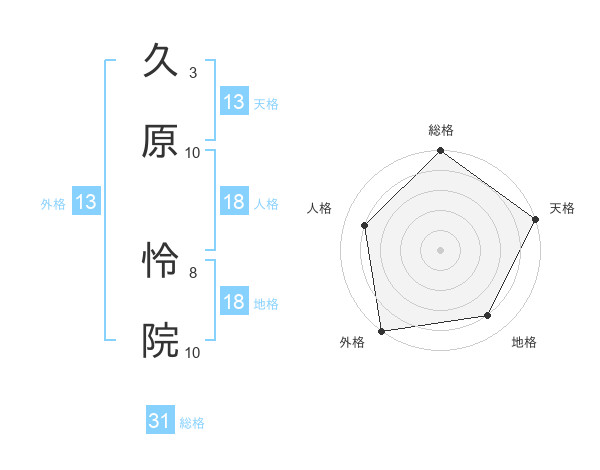 久原 怜院さんの天格は13画の5点!