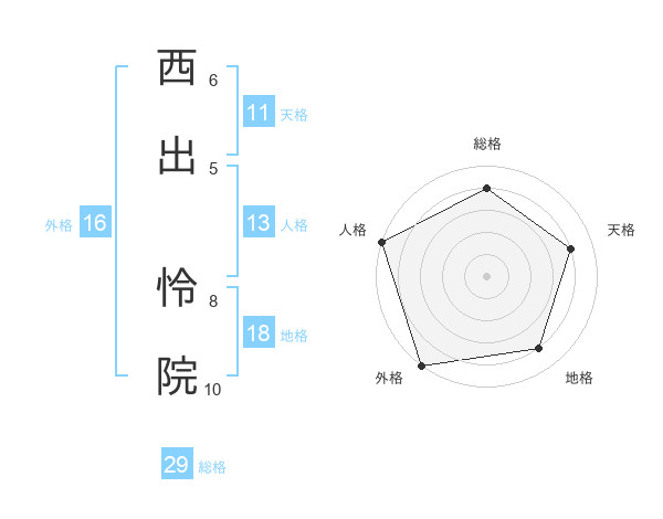 西出 怜院さんの総格は29画の4点!