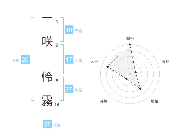一咲 怜霧さんの総格は37画の5点!