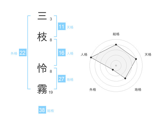 三枝 怜霧さんの総格は38画の4点!