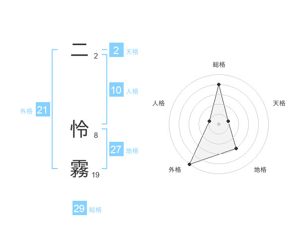二 怜霧さんの総格は29画の4点!