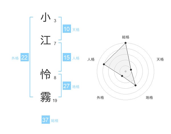 小江 怜霧さんの総格は37画の5点!