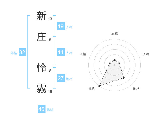 新庄 怜霧さんを姓名の画数から五運を鑑定