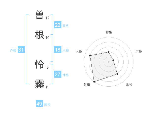 曽根 怜霧さんを姓名の画数から五運を鑑定