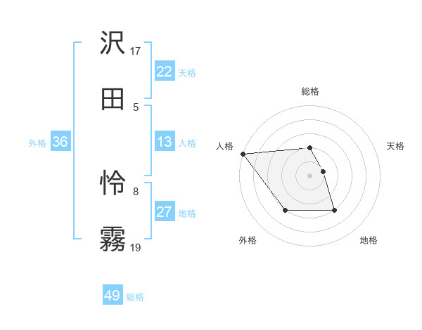 沢田 怜霧さんを姓名の画数から五運を鑑定