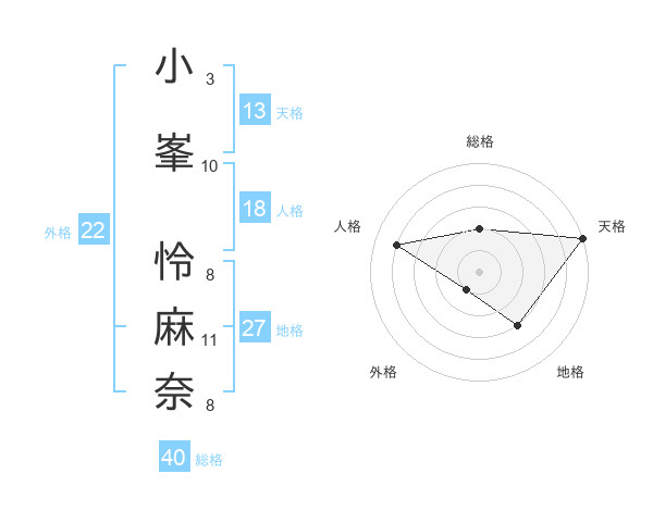 小峯 怜麻奈さんを姓名の画数から五運を鑑定