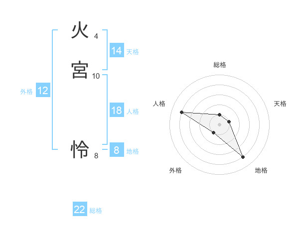 火宮 怜さんを姓名の画数から五運を鑑定