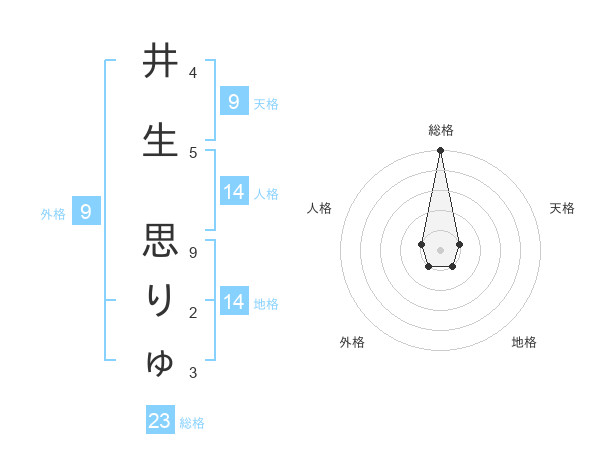 井生 思りゅさんを姓名の画数から五運を鑑定