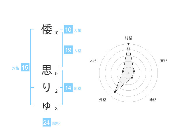 倭 思りゅさんの総格は24画の5点!