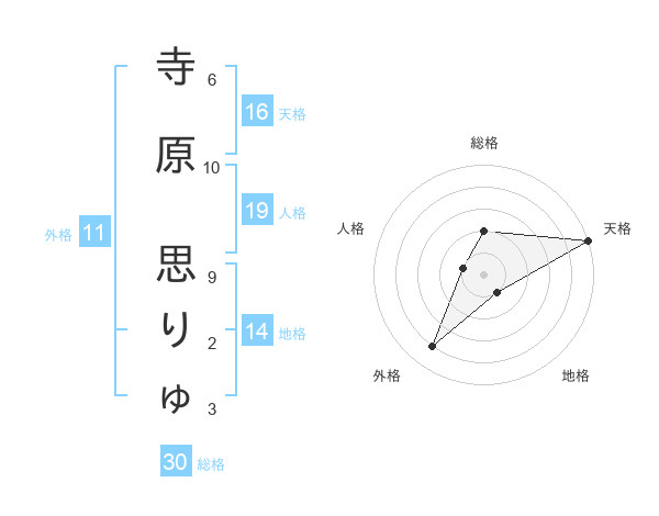 寺原 思りゅさんの天格は16画の5点!
