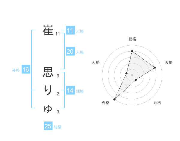 崔 思りゅさんの外格は16画の5点!
