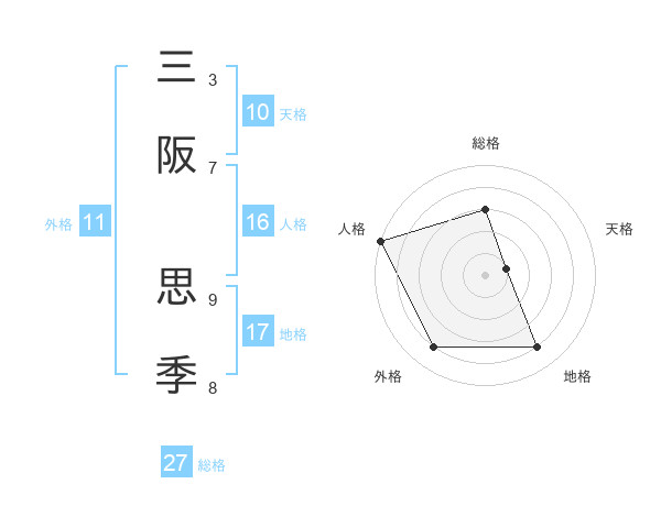 三阪 思季さんの外格は11画の4点!