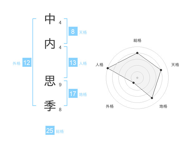 中内 思季さんの天格は8画の4点!