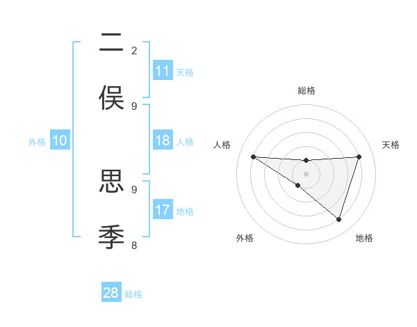 二俣 思季さんの天格は11画の4点!