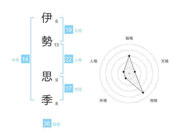 伊勢 思季さんの総格は36画の3点!