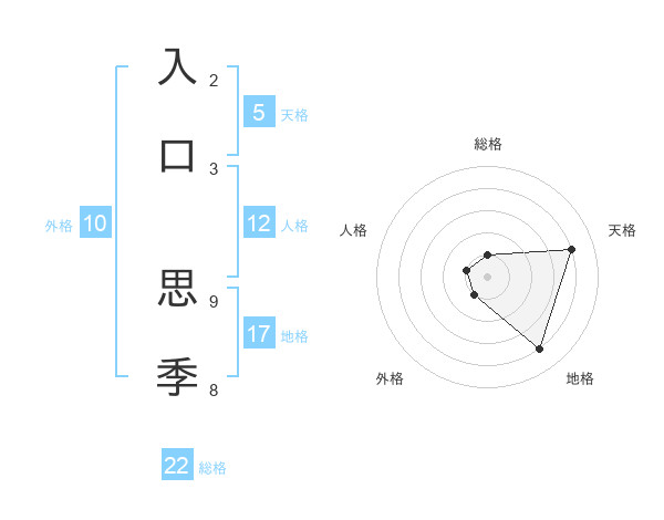 入口 思季さんの総格は22画の1点!