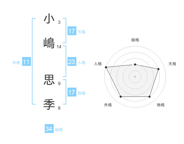 小嶋 思季さんの天格は17画の4点!