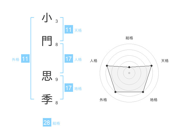 小門 思季さんの天格は11画の4点!