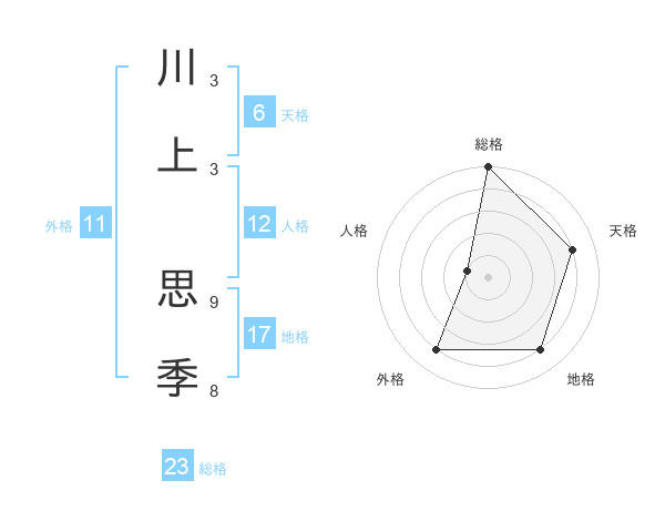 川上 思季さんの総格は23画の5点!