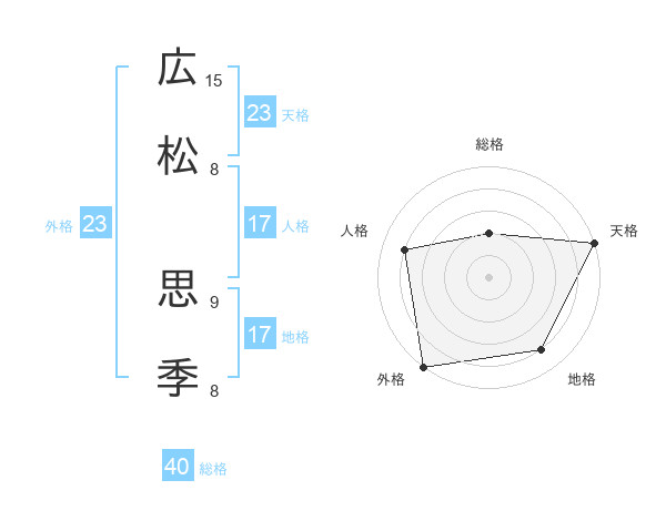 広松 思季さんの天格は23画の5点!