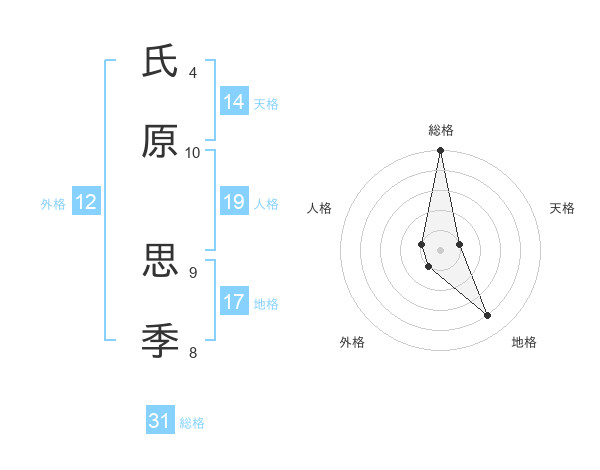 氏原 思季さんの総格は31画の5点!