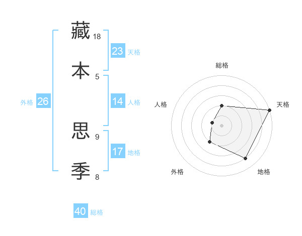 家系が持つ宿命的な運勢を表します。祖先から受け継いだ苗字ですので自分の力が及びません。家柄を象徴します。