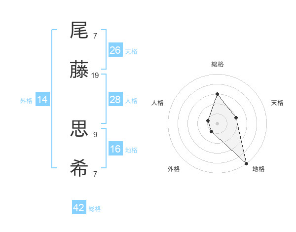 尾藤 思希さんの天格は26画の2点!