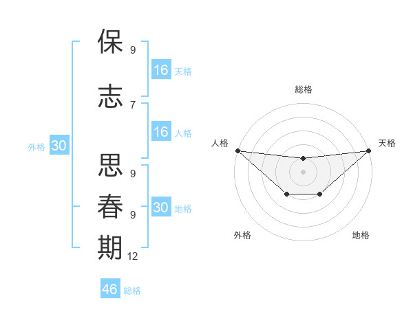 保志 思春期さんの地格は30画の2点!