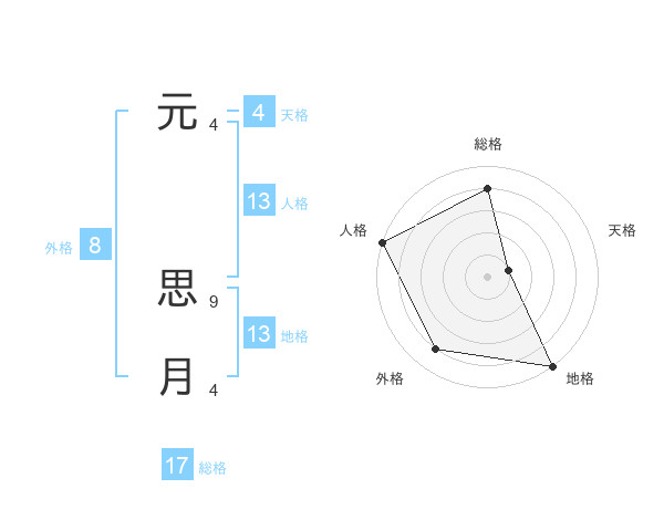 元 思月さんの外格は8画の4点!
